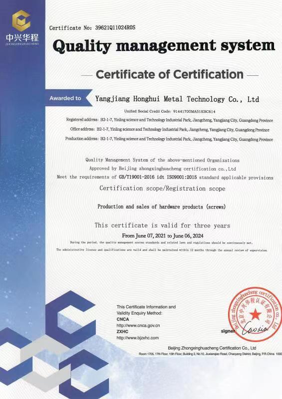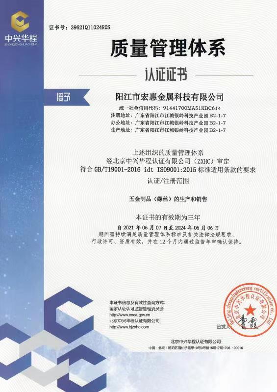 廣東宏惠金屬公司是家20多年一直專注鉆尾螺絲開發(fā)與生產(chǎn)的企業(yè),是國內(nèi)較早做鉆尾的廠家之一,同時(shí)也是國內(nèi)專業(yè)開發(fā)生產(chǎn)鉆尾螺絲的企業(yè)之一。 我司地址為于廣東省陽江市江銀嶺科技園距沈海高速白沙出口不到2公里,距陽江高鐵站也只有十余公里交通便利。 公司占地120畝,擁有超500臺(tái)套專業(yè)設(shè)計(jì) 生產(chǎn) 檢測設(shè)備。一個(gè)超200人的專業(yè)團(tuán)隊(duì),能夠嚴(yán)格按照ISO9001質(zhì)量體系要求生產(chǎn)符合GB DIN AS3566 ANSI JIS BS等標(biāo)準(zhǔn)的產(chǎn)品,生產(chǎn)銷售各種高品質(zhì)緊固件系列產(chǎn)品,為中高端客戶提供優(yōu)質(zhì)服務(wù)。也可按照客戶要求設(shè)計(jì)生產(chǎn)各種鉆尾,年產(chǎn)高品質(zhì)碳鋼 不銹鋼鉆尾螺絲2萬余噸.在各大客戶的鼎力支持下產(chǎn)品暢銷全國,并遠(yuǎn)銷亞 非 拉 歐等地,在這20多年發(fā)展的道路上我司堅(jiān)持“以質(zhì)量求生存,以信譽(yù)求發(fā)展”的精神理念不斷完善公司體系。